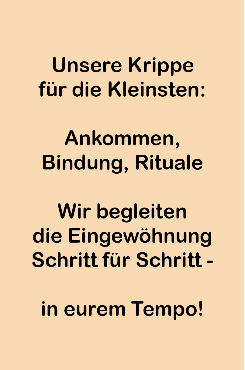 Wir gestalten die Eingewöhnung individuell – bindungsorientiert und in eurem Tempo. In der Besichtigung erklären wir euch den Ablauf. Bei unserem Kennlerngespräch vor der Eingewöhnung gehen wir es dann noch einmal Schritt für Schritt gemeinsam durch und klären alle Fragen.