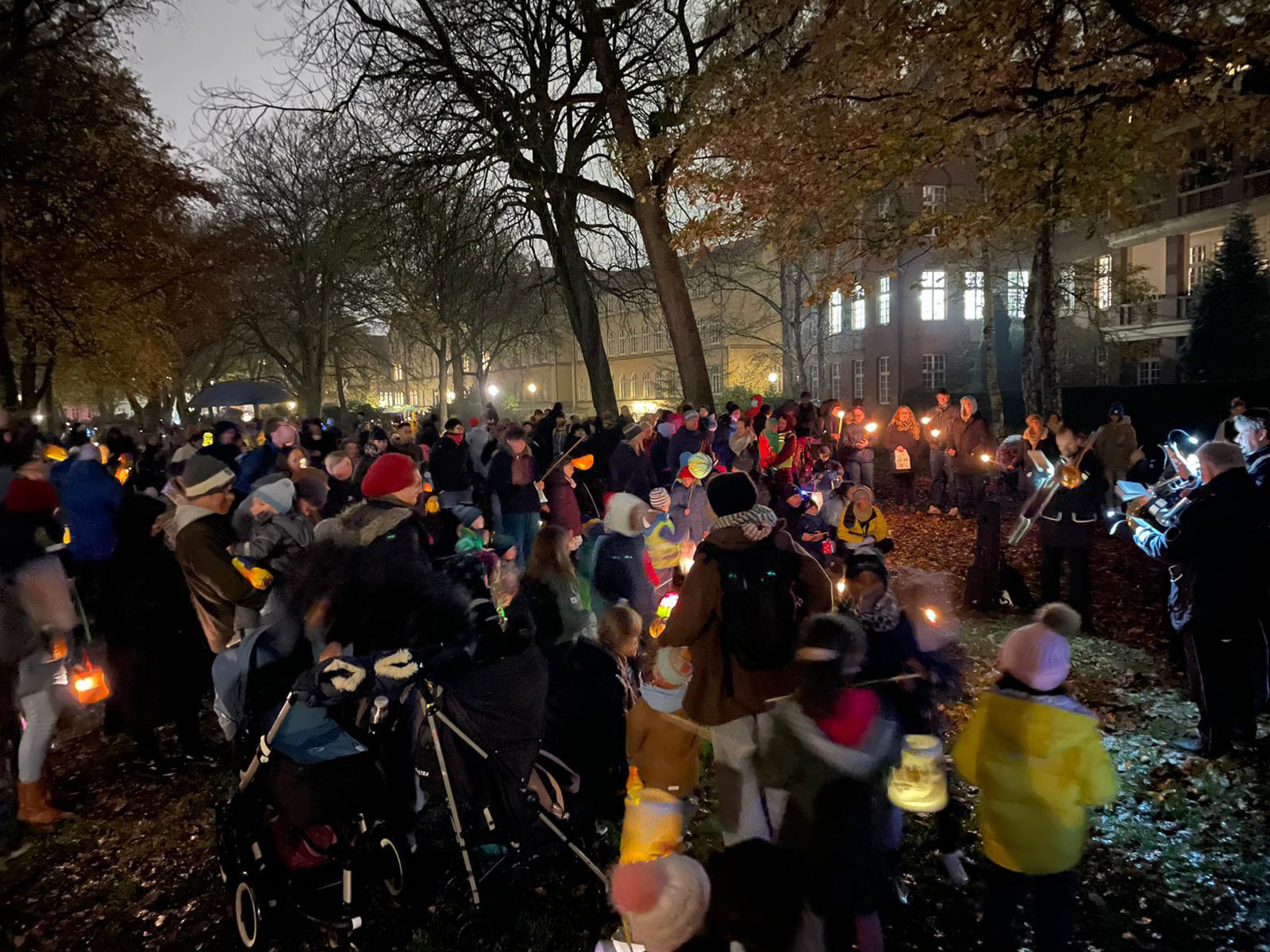 Jetzt achten wir darauf, unser Lichterfest nicht am St.-Martins-Tag zu feiern. Wir treffen uns auf einem Spielplatz in der Nähe, der allen vertraut ist. Die schöne Musik unseres Bläserensembles ist zu einer stimmungsvollen Tradition geworden.